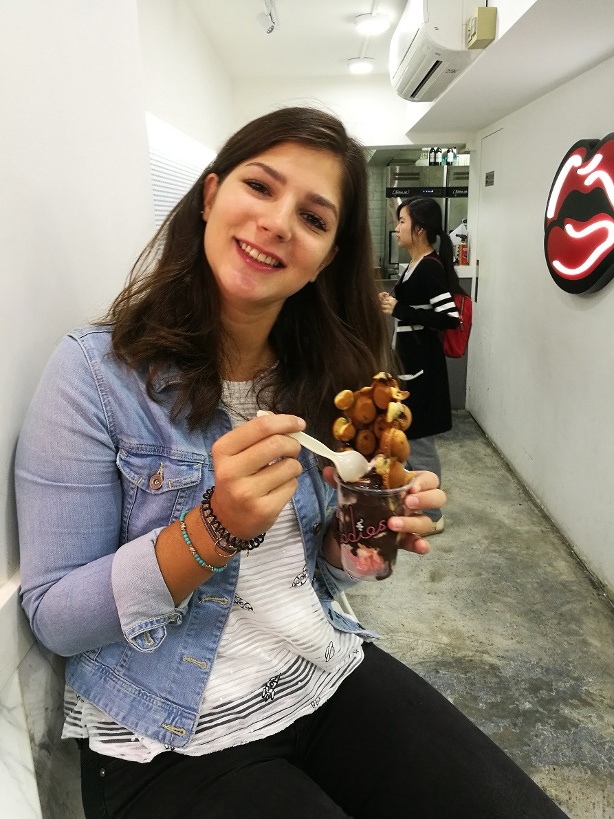 Nun zu Hongkong selber. Die Stadt hat mir richtig gut gefallen, obwohl es nicht die typische Touristen-Stadt ist. Besonders Essen kann man hier richtig gut und es scheint so als ob jedes zweite Restaurant in irgendeiner Weise vom Michelin Guide empfohlen wurde. Hier gibt es vor allem viele Nudelsuppen und Dim-Sums (gefüllte Nudeln) und mein Favorit: Hong Kong Waffeln. Ich glaub ich hab sicher jeden Tag mindestens eine gegessen (einmal sogar eine die vom Michelin Guide empfohlen wurde haha)
