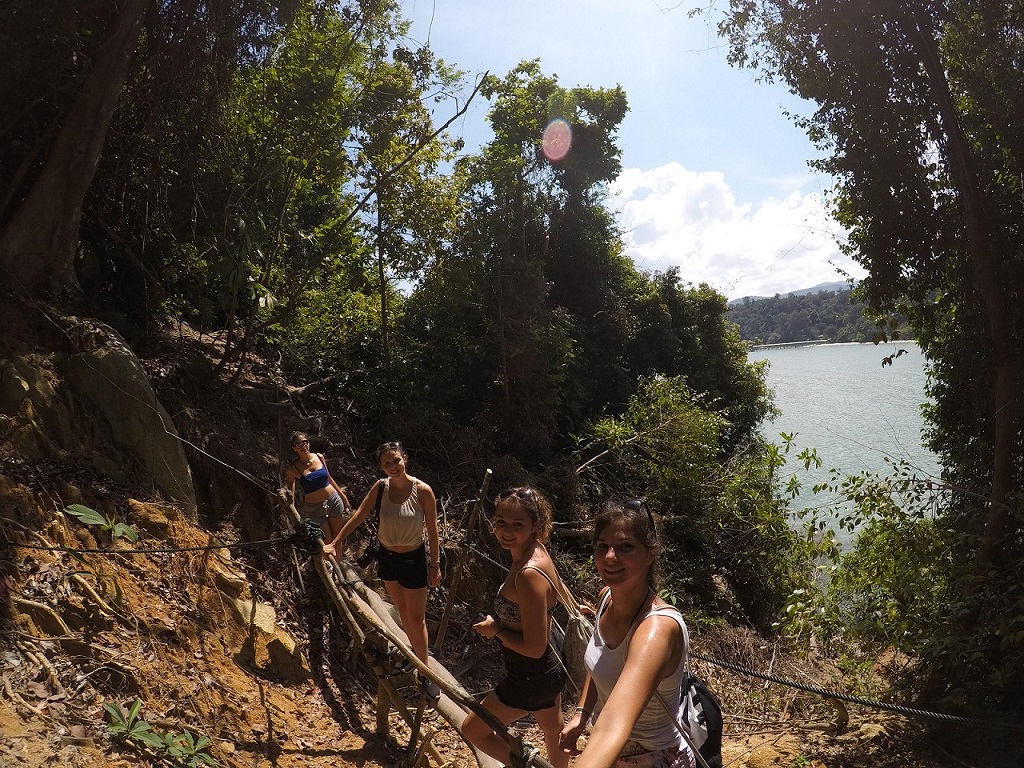 Auch den nächsten Tag haben wir in Penang verbracht, aber diesmal in Teluk Bahang. Dort gibt es einen Nationalpark wo wir zu einem Monkey Beach gewandert sind - und ja, da waren wirklich sehr viele Affen! Am Anfang waren sie noch weiter entfernt aber irgendwie dürften sie über die Zeit mutiger geworden sein. Als wir kurz nicht aufpassten, waren sie auf einmal schon an unseren Sachen dran! Und soooo schlau diese Tiere, die haben alle Hosentaschen durchsucht, ob sie was zum Fressen finden. Der Spaß hat dann aufgehört, als sie auf einmal mit einem Schuh von uns in den Dschungel abgehaut sind! Gott sei Dank ist dann aber ein Einheimischer gekommen, der uns geholfen hat den Schuh wieder zu bekommen. Das lustige dabei war, dass die Affen vor uns keine Angst gehabt haben, aber so bald sie den Einheimischen gesehen haben sind sie alle geflüchtet - ich kanns nur nochmal sagen: dumm sind die wirklich nicht! ^^