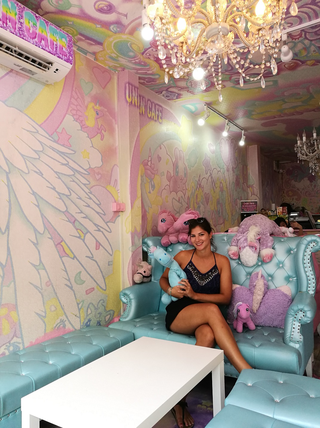 Nach diesen vielen Reisen habe ich mich mal wieder auf eine Woche in Bangkok und vor allem mein Bett hier gefreut. Auch in Bangkok gibt es nämlich noch viele Sachen die ich unbedingt sehen und machen möchte. Eines davon war das bekannte Einhorn Cafe, dass ich mal im Internet gesehen habe. Dort ist alles rosa-glitzerig und voll mit Einhörnern :D