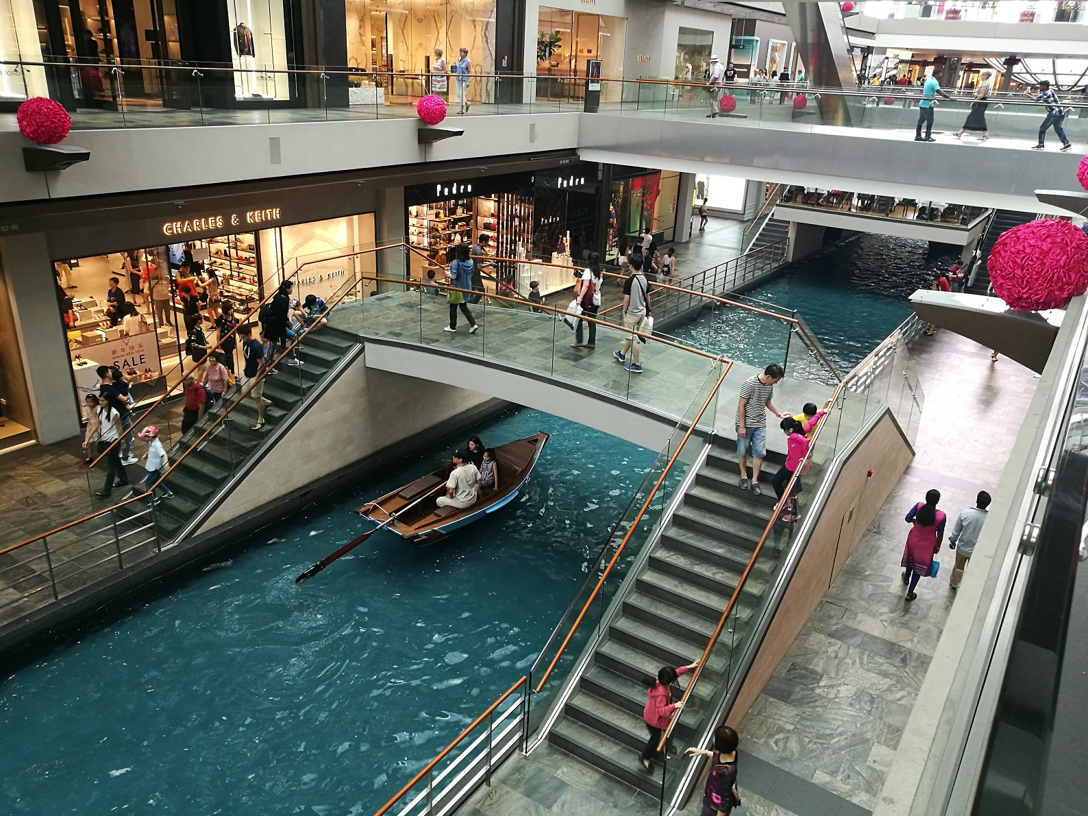 Besonders witzig habe ich auch diese Mall gefunden, in der man mit dem Boot fahren kann - fast so wie in Venedig. Allgemein sind die Shopping Malls in den größeren Städten in Asien ziemlich verrückt. In dem einen Shopping-Center in Bangkok steht jede Menge Kunst und die Toiletten-Sitze sind beheizt und mit einer Fernsteuerung kann man sie automatisch nach oben, unten, links und rechts verstellen (Ein Foto davon hab ich aber trotzdem nicht gemacht ;) ) In einer anderen Mall habe ich auch schon einen Eislaufplatz gesehen.