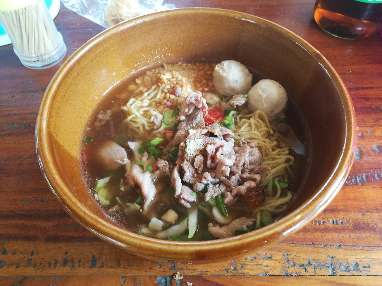 Dafür haben wir eine richtig gute Nudelsuppe am Weg nach Hause gegessen. Das war ein kleines Street-Food Restaurant wirklich mitten im nirgendwo. Das Essen war aber toll und die Atmosphäre war typisch thailändisch mit den ganzen Bildern vom König.