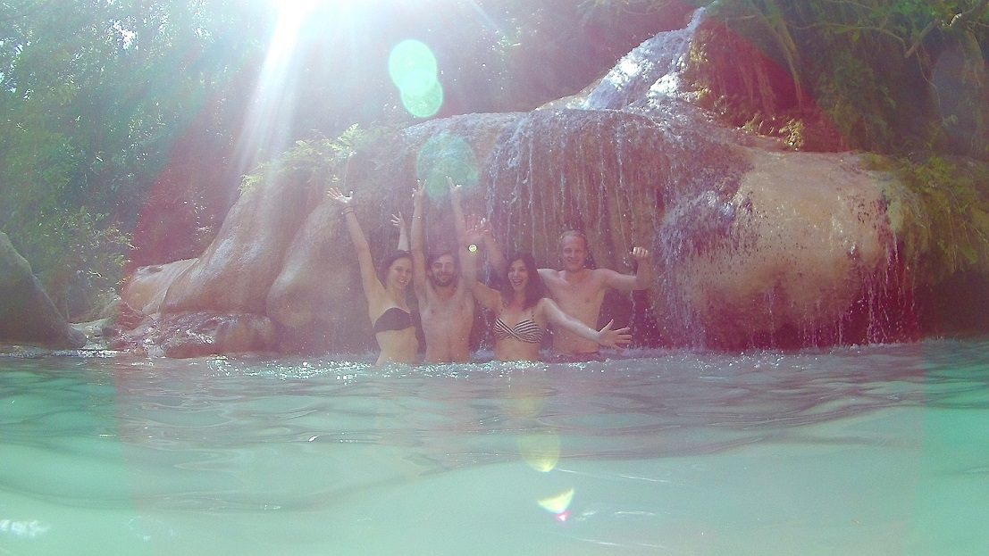 Dort im Park sind wir dann zu den Wasserfällen gewandert. Der Weg war gar nicht so leicht aber der letzte Wasserfall war es absolut wert. In dem Becken sind auch Fische geschwommen, die an meinen Zechen geknabbert haben.